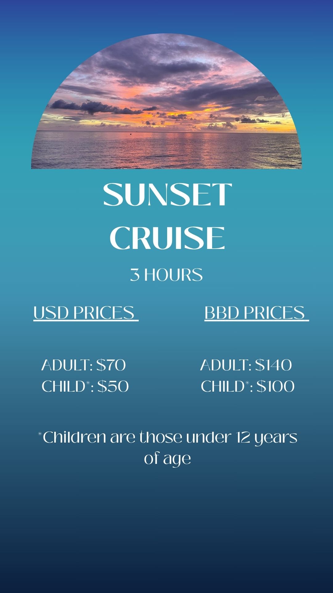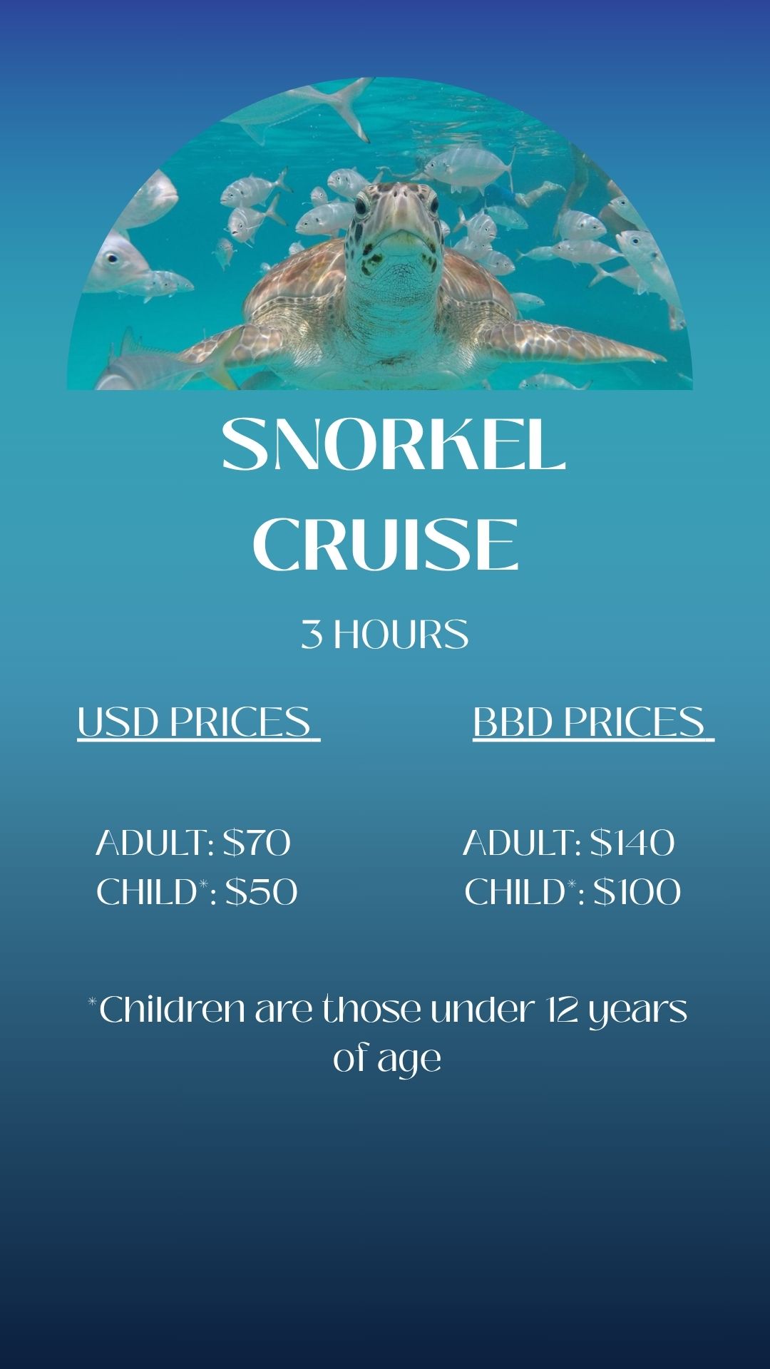 After stopping to swim with the turtles and snorkel at the coral reef, sit back and enjoy the view as we sail along the beautiful west coast of Barbados watching the sunset.